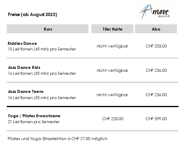 - Weiterbildungen in Kindertanz und Jazz Dance